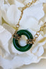 Bracciale in argento 925 placcato oro 18k ad alto spessore con pendente circolare in giada, simbolo di perfezione, compiutezza e unione.