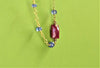 Bracciale in argento 925 placcato oro 18k realizzato con la catena a rosario composta da rondelle di tanzanite, montate una ad una, che risaltano il colore del vero protagonista: il rubino taglio a cuscino.