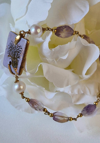 Bracciale con ametrina, perle e ceramica