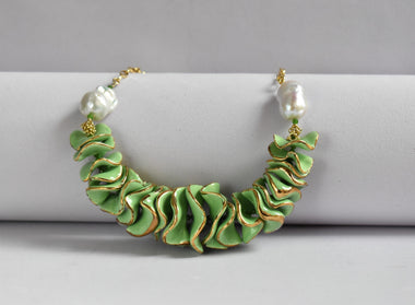 Collana con perle barocche e ruches in ceramica dipinta oro 24k
