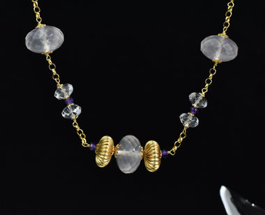 Collana in argento con quarzo rosa, ametista e cristallo di rocca