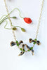 Collana in argento 925 anallergico placcato oro 18k ad alto spessore con agata color verde smeraldo e ruches in ceramica dipinta a mano a terzo fuoco.