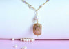 Collana in argento 925 placcato oro 18k con pendente in ceramica dipinta a mano oro zecchino, perle d’acqua dolce e ametista. Il pendente in ceramica è il vero protagonista che riprende il plissé della moda.