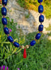 Collana in argento 925 placcato oro 18k. I barilotti agata blu notte sono intervallati dalle rondelle di rubino naturale.