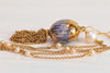 Collana donna in argento 925 placcato oro 18k con perle d'acqua dolce e un pendente in ceramica dipinta a mano oro puro 24k a terzo fuoco, dedicata agli amanti del jeans.