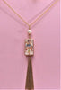 Collana lunga con ceramica dipinta a mano con oro a terzo fuoco e perla