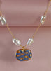 Collana con perle barocche e ceramica dipinta a mano pied de poule con oro 24k