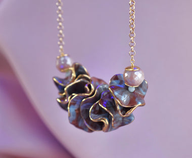 Collana in argento 925, ceramica dipinta oro 24k e pietra di luna