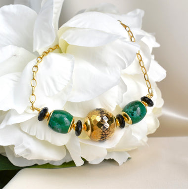 Girocollo con opale peruviano e onice dipinto con oro 24k