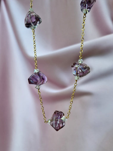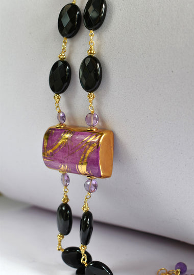 Girocollo in argento 925 con pendente in ceramica con oro 24k, ametista e onice