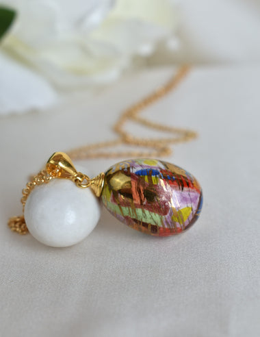 Collana in argento con pendente in ceramica dipinta oro 24k