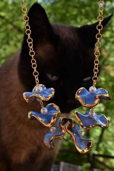 Collana lunga con ceramica dipinta a mano con oro a terzo fuoco e perla