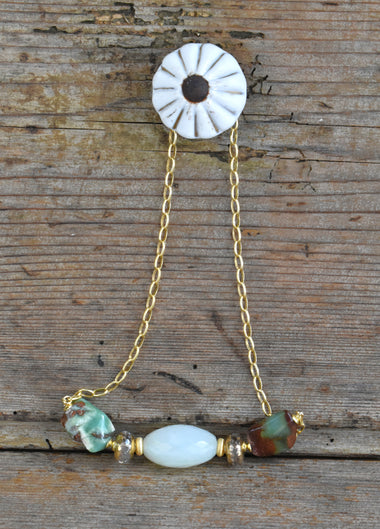 Girocollo con opale, crisoprasio e cristallo di rocca dipinto a mano con oro 24k