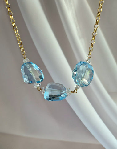 Collana di corallo, acquamarina e onice dipinto oro 24k
