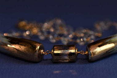 Girocollo con quarzo e ceramica dipinta oro zecchino e foglia oro 24k