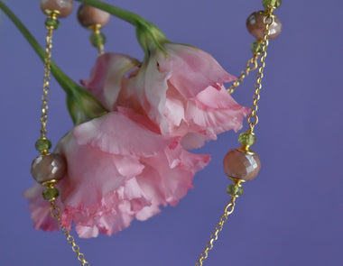 Collana con quarzo rosa e ceramica dipinta a mano oro 24 k