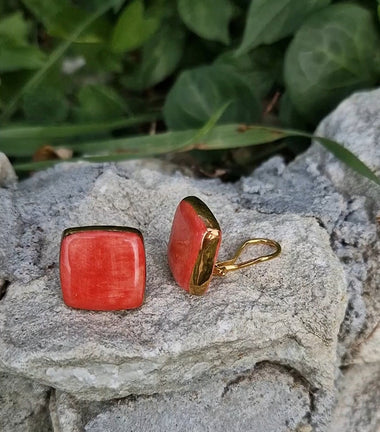 Orecchini bottone a clip con ceramica dipinta oro 24k
