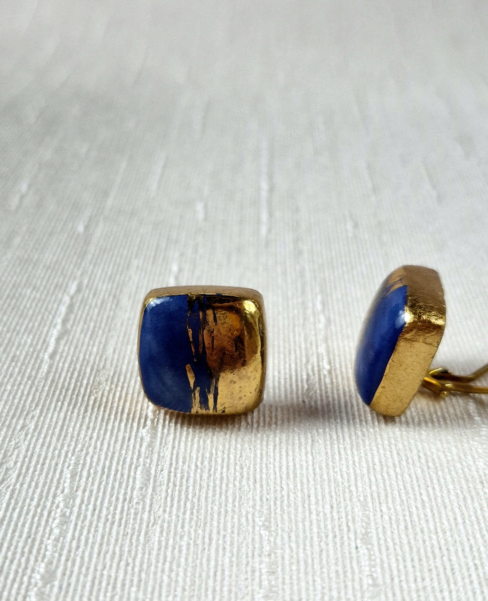 Orecchini bottone a clip con ceramica dipinta oro 24k e foglia oro 24k