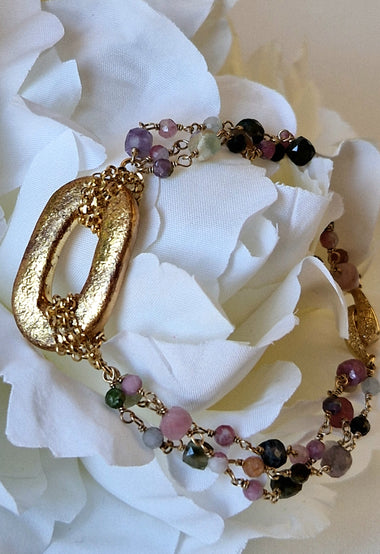 Bracciale multifilo con tormalina e ceramica dipinta oro 24k