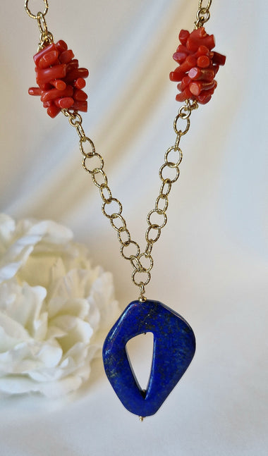 Collana con lapislazzuli e corallo