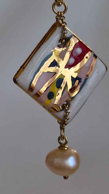 Orecchini pendenti con ceramica dipinta a oro 24k a terzo fuoco